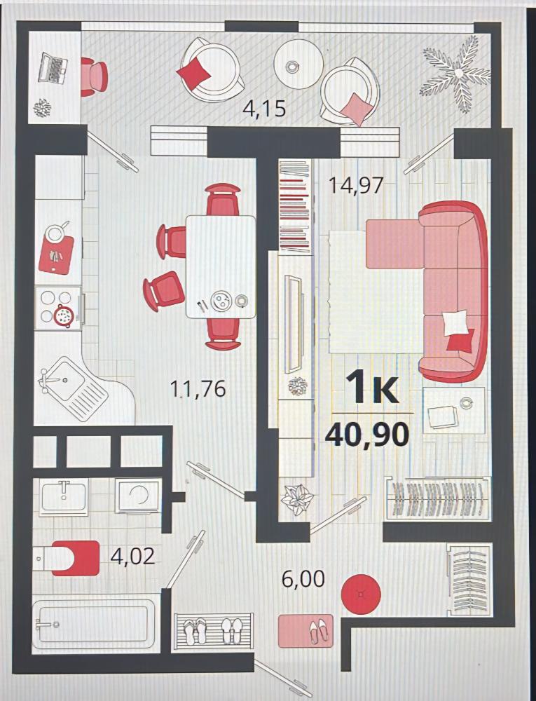 Квартира 36,8 кв.м + лоджия с витражным остеклением 4,15 кв.м.